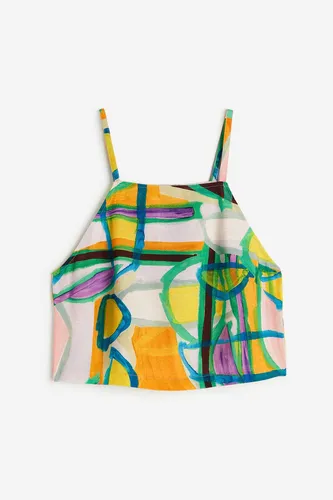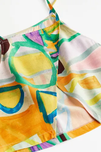 Top en tejido estampado de viscosa y lino. Modelo con tirantes finos, escote alto y espalda cruzada con abertura en el bajo.