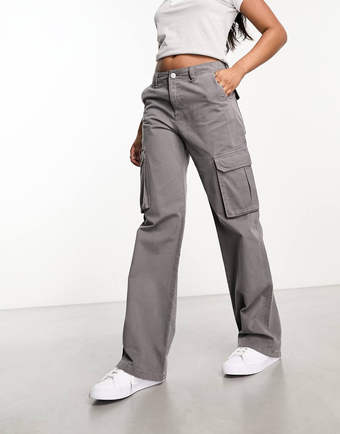 Pantalón cargo de corte recto. Tiro medio. Cuatro bolsillos.