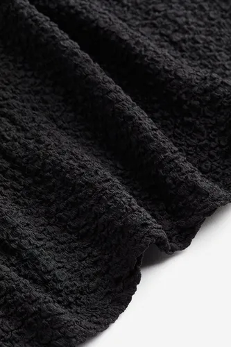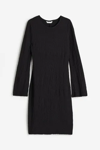 Vestido corto y ajustado de jersey texturizado con cuello redondo y mangas largas con ligero vuelo.