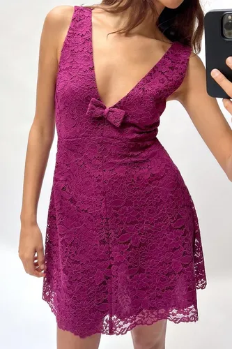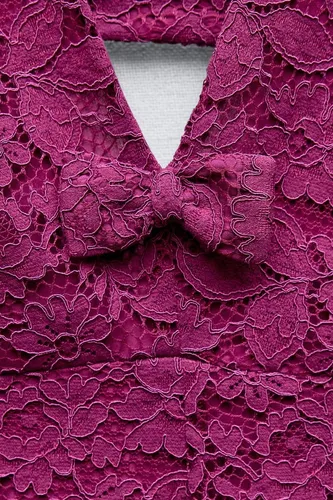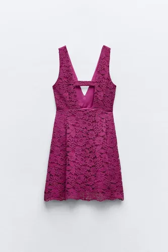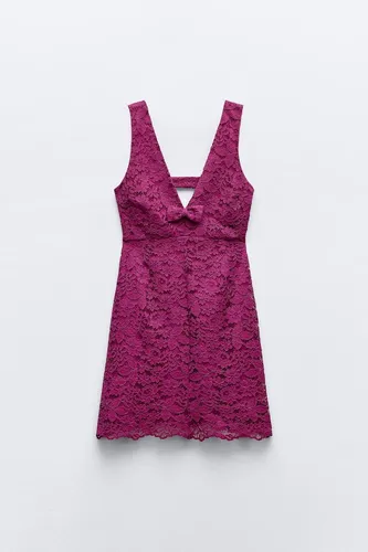 Vestido de mujer sin mangas de rayas finas con escote en V y detalle de lazo. Espalda abierta con tirantes anchos. Forrado. Cierre clateral invisible.